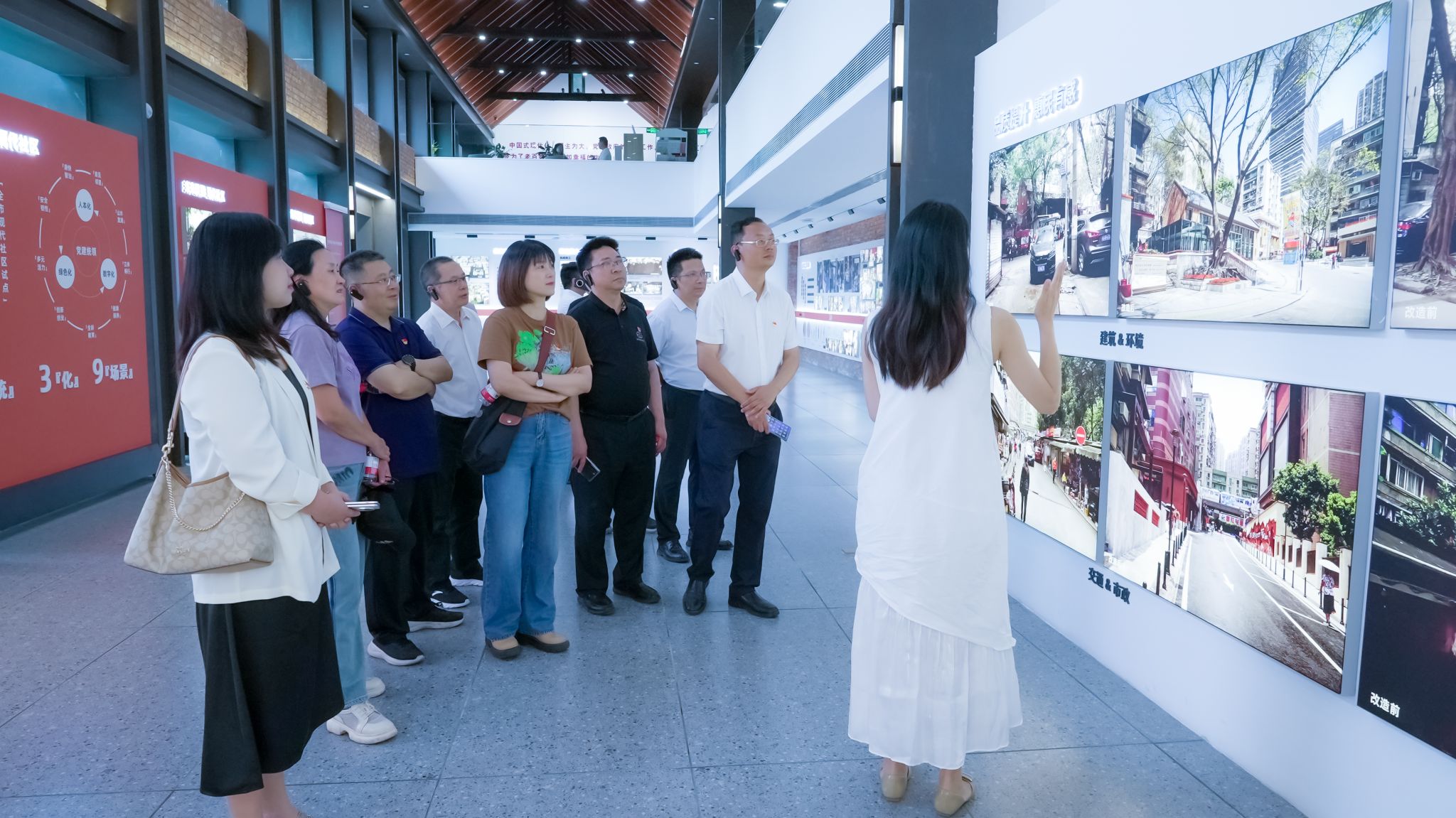 在民主村社区工作人员的带领下,大家沿着习近平总书记视察之路,依次参观了一号信箱红色教育基地、社区会客厅、社区食堂、建设渠小广场等,现场感受了城市更新给这个老旧社区带来的翻天覆地的变化。