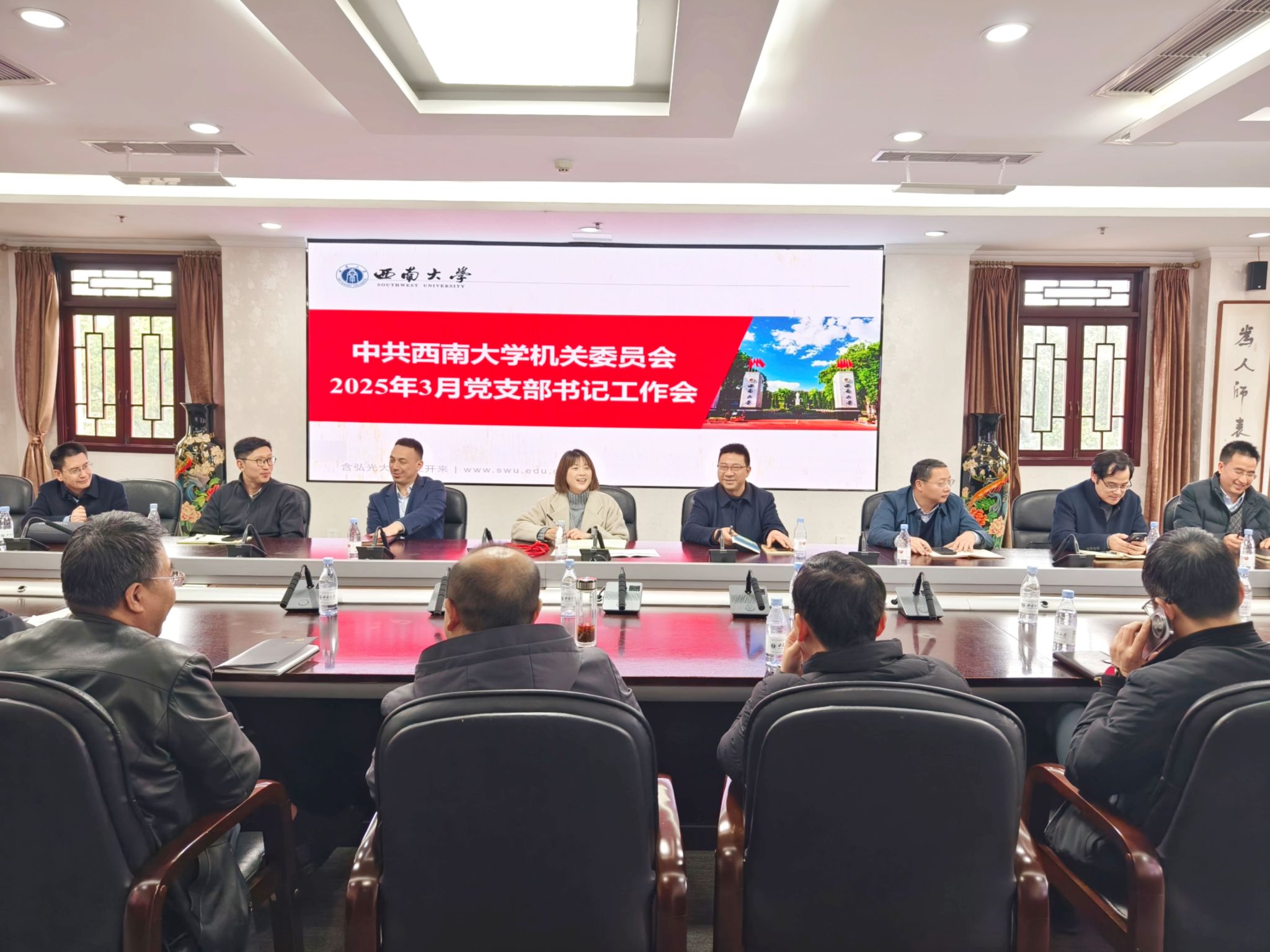 万劲强调,机关党委、各党支部要认真学习贯彻学校2025年春季学期干部大会精神,紧密围绕学校重点工作,以高度的政治责任感、时不我待的现实紧迫感推进本运单本单位各项工作,巩固拓展党纪学习教育成果,走在前、做表率,着力建设一流模范机关,收官“十四五”、谋篇“十五五”,迎接学校第四次党代会胜利召开!