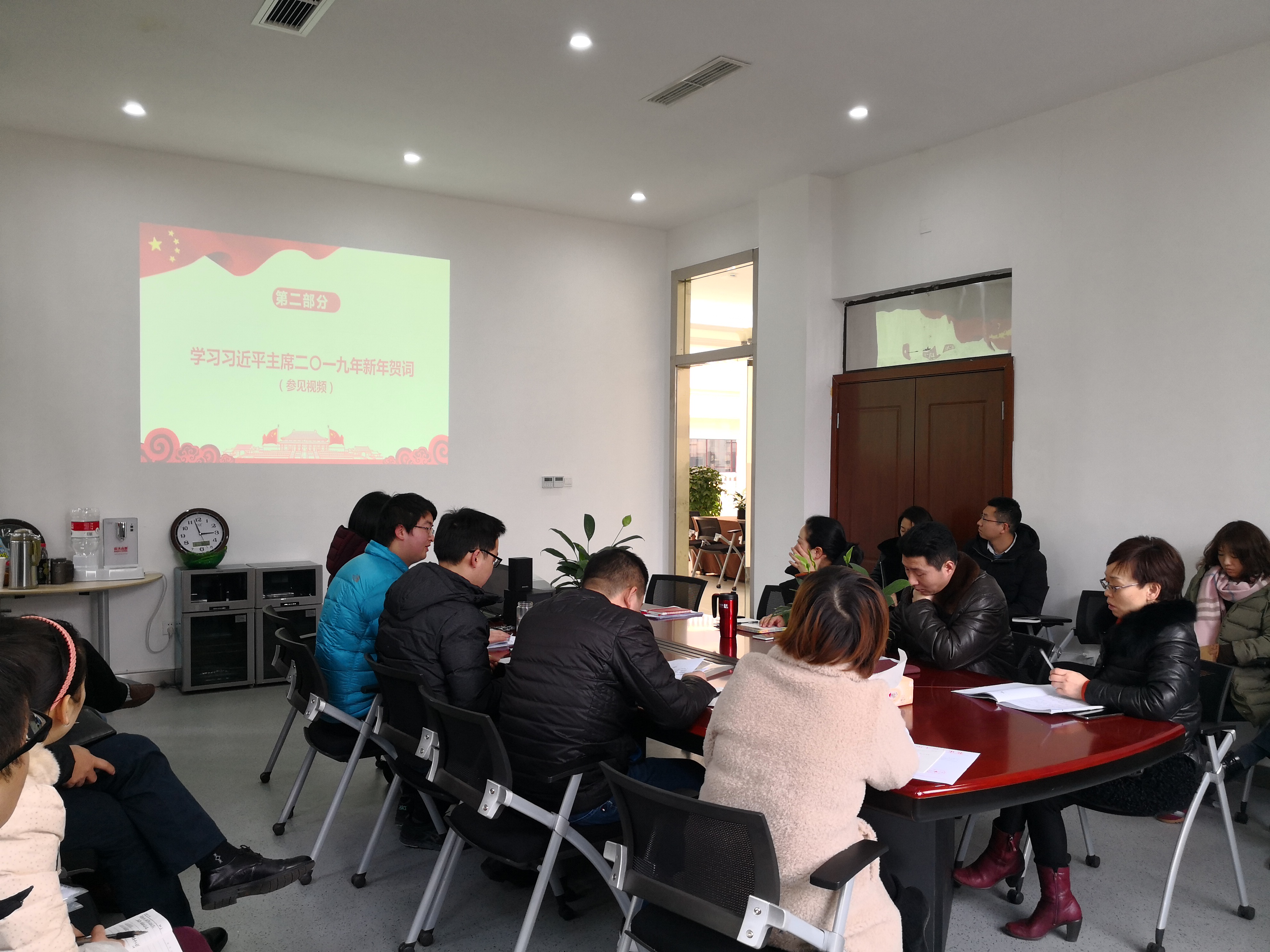最后,参会同志重温了国家主席习近平同志的二〇一九年新年贺词,并围绕“奔跑追梦 做新时代奋斗者”展开热烈讨论。主席的新年贺词启示我们要做新时代的奋斗者,努力拼搏、努力奋斗;要做新时代的追梦人,追逐梦想、成就梦想;号召我们2019年要一起用拼搏和奋斗书写属于我们的时代篇章。大家纷纷表示,总书记的重要讲话给我们指明了新的工作方向,重庆市教育大会精神给我们提出了新的工作目标,主席的新年贺词为我们增添了新的工作动力,我们一定要按照总书记的要求和期望,立足本职岗位,努力拼搏、努力奋斗,以优异的工作成绩向祖国70华诞献礼。