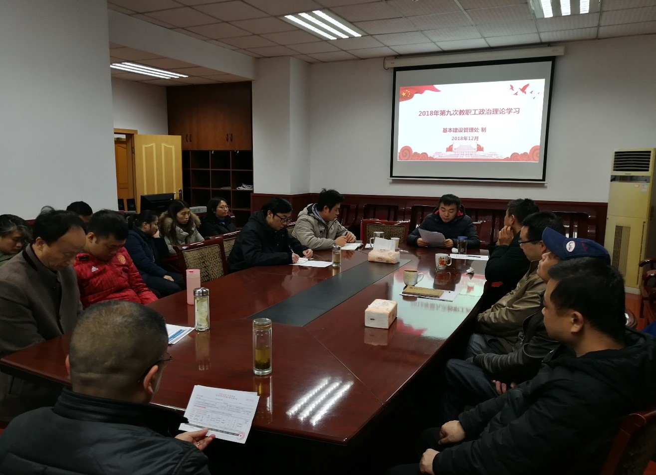 2018年12月7日上午,基本建设管理处全体教职工开展了本年度第九次政治理论学习会。按照学校党委要求,学习了教育部关于印发《新时代高校教师职业行为十项准则》《新时代中小学教师职业行为十项准则》《新时代幼儿园教师职业行为十项准则》的通知和教育部关于高校教师师德失范行为处理的指导意见。学习会由吴新宇副处长主持。