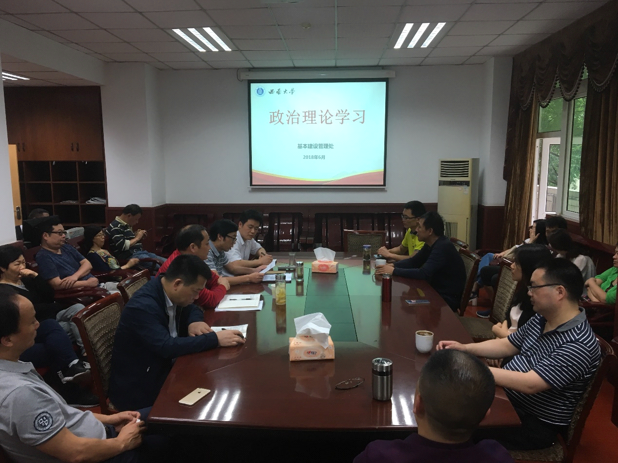 61日下午,基本建设管理处组织全体人员在基本建设管理处二会议室进行了2018年第四次政治理论学习,会议由基本建设管理处支部书记、副处长吴新宇同志主持。