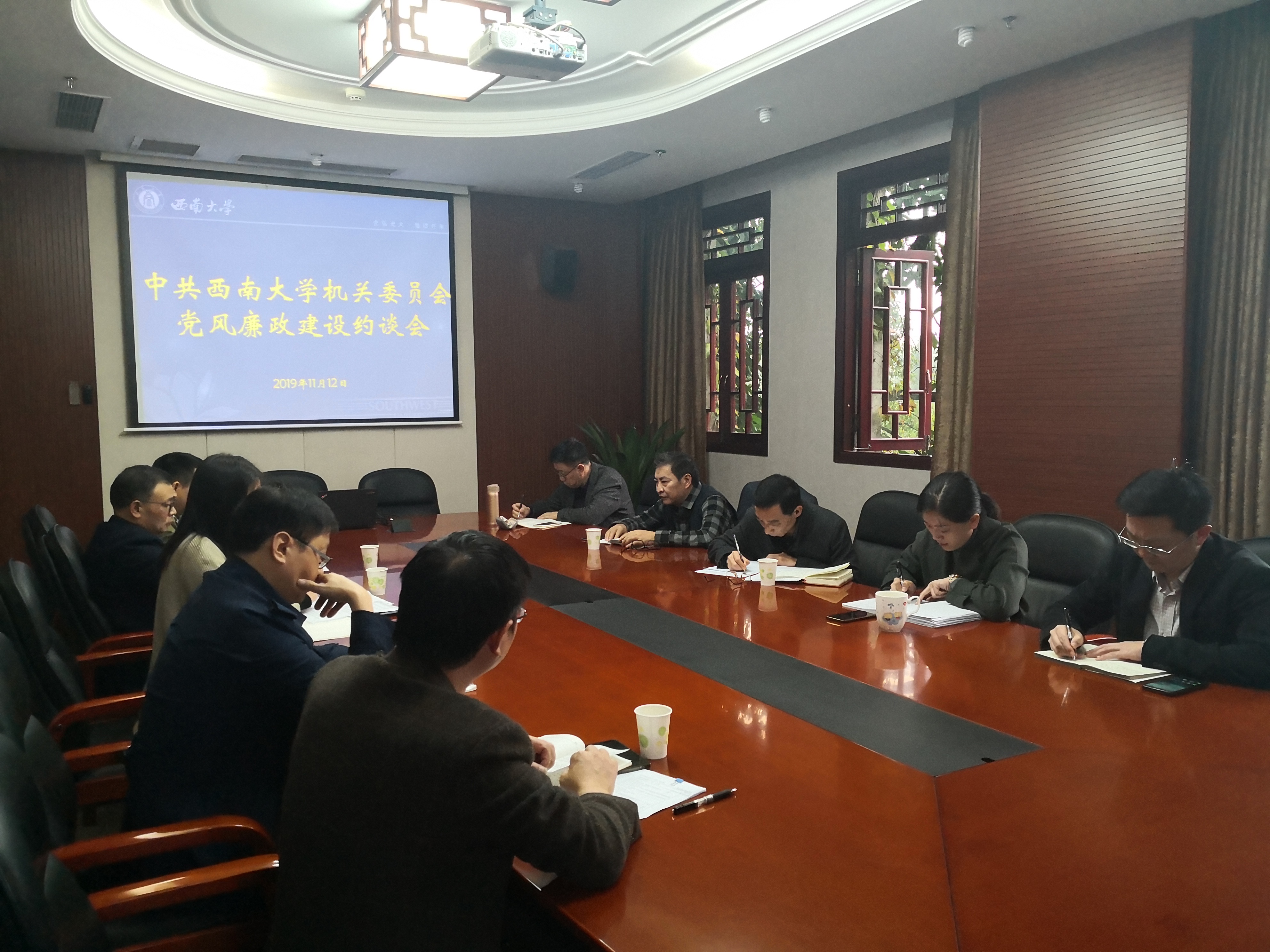 为落实机关党风廉政建设,机关党委于1112日下午在行署楼A栋一会议室召开了2019年机关党委党风廉政建设约谈会。会议由机关党委副书记、纪委书记万劲同志主持,机关党委书记李增银同志和全体机关纪委委员参加会议,实验室与设备管理处、基本建设管理处相关同志参加约谈。