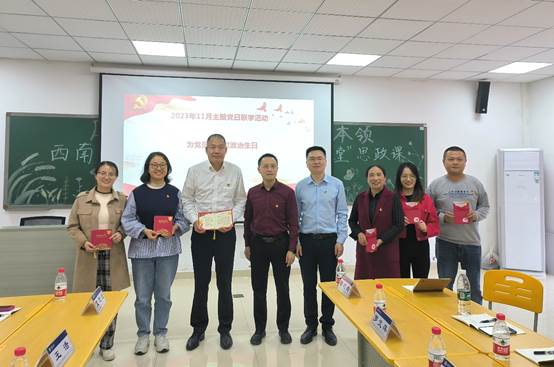 随后,发展规划与学科建设部副部长杜彬恒结合习近平总书记在中共中央政治局第九次集体学习时的重要讲话精神,以《铸牢中华民族共同体意识 推进新时代党的民族工作高质量发展》为题讲授党课。实验室建设与设备管理处副处长罗书强从基本架构、重要条款内容、施行时间等几个层面,引导大家学习了《中华人民共和国爱国主义教育法》。罗小英、赵倩、李朝明等同志结合学习主题及业务工作情况进行了深入、充分的交流研讨。最后,全体党员为11月过“政治生日”的葛信勇、艾芝兰、赵倩、罗小英、粟若淼、张绿霞等6位同志过了政治生日,通过营造浓厚的“政治生日”氛围,进一步强化了党员同志们的身份意识和责任意识,增强了党组织的向心力和凝聚力。
