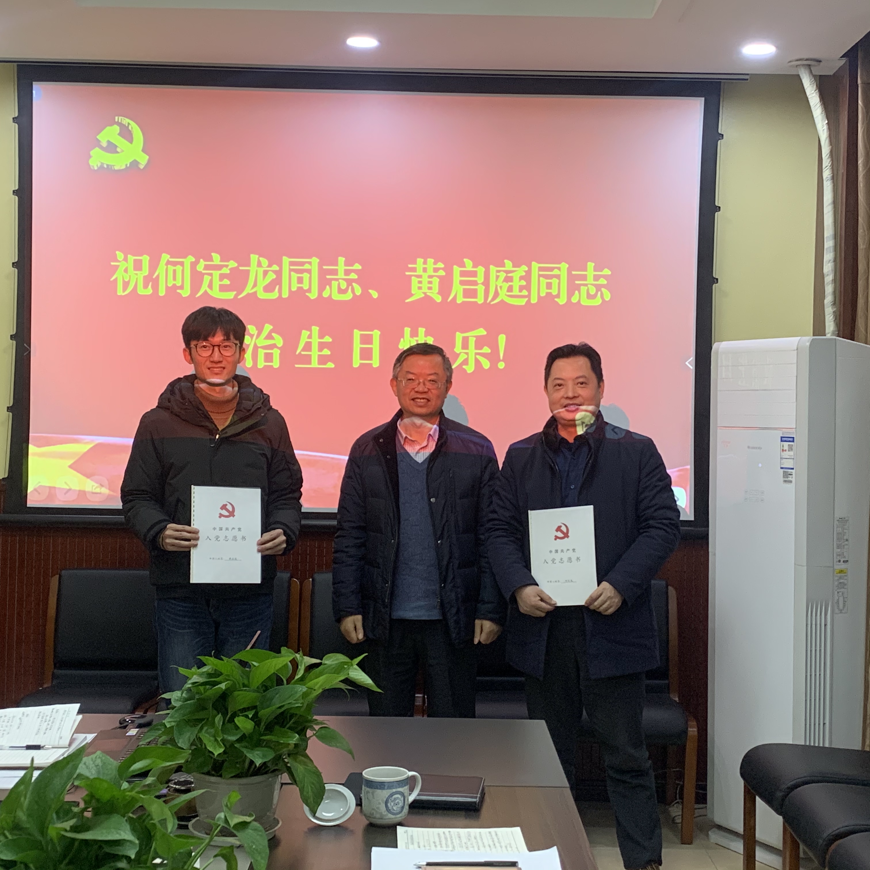 会上,党支部还为何定龙、黄启庭过了政治生日,两位同志重温了入党志愿。周书记勉励两位同志牢记入党时的承诺,始终保持共产党员的初心,继续为学校事业发展和统战工作做出积极贡献。